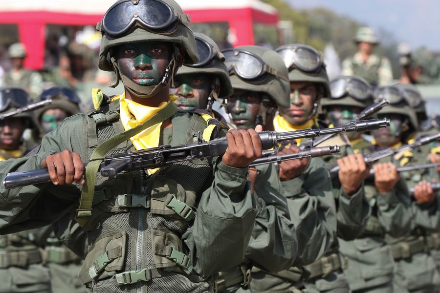 Venezuelan armed forces are inspected by President Nicolas Maduro after the presidential inauguration ceremony in Caracas, Venezuela, on Jan. 10, 2019. (Xinhua)