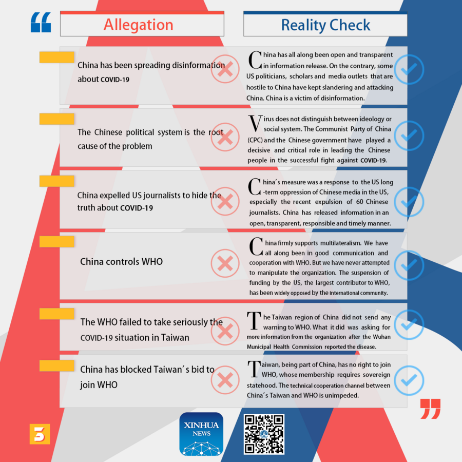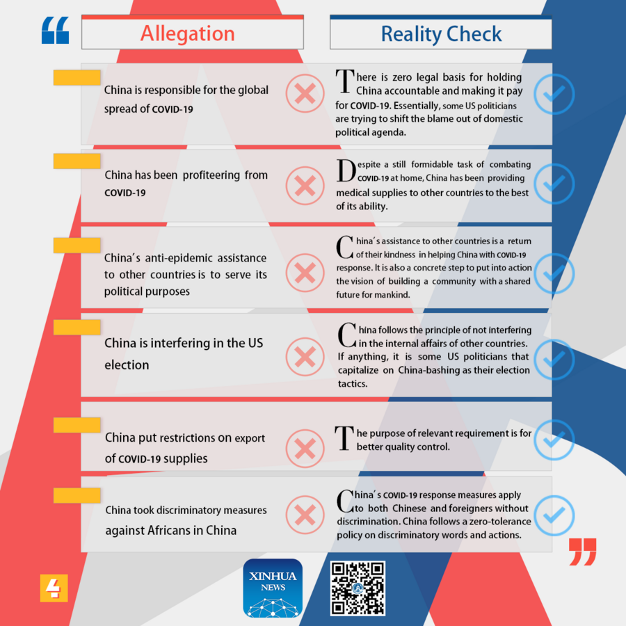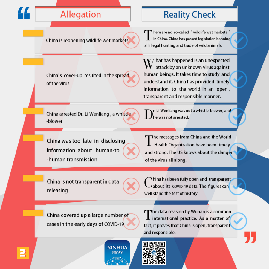 U.S. has fabricated a series of allegations to shift blame to China. It's time to let facts speak for themselves. Here is the reality check of U.S. allegations against China on COVID-19. ■
