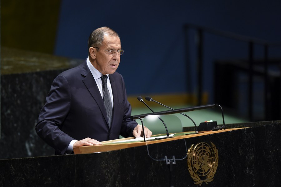 Russian Foreign Minister Sergei Lavrov addresses the General Debate of the 74th session of the UN General Assembly at the UN headquarters in New York, on Sept. 27, 2019. (Xinhua/Han Fang)