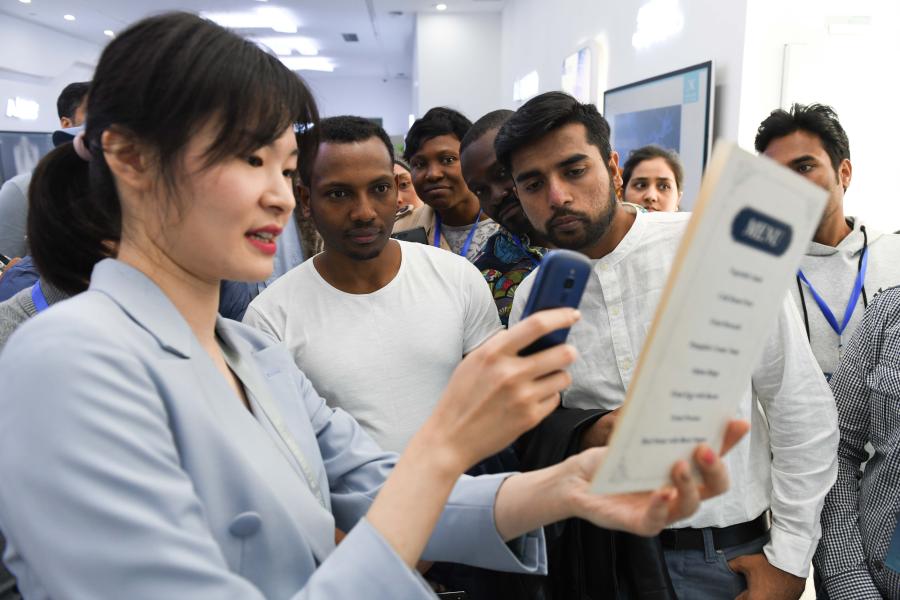 Foreign students visit the leading Chinese tech firm iFlytek in Hefei, east China's Anhui Province, Oct. 18, 2019. (Xinhua/Zhang Duan)