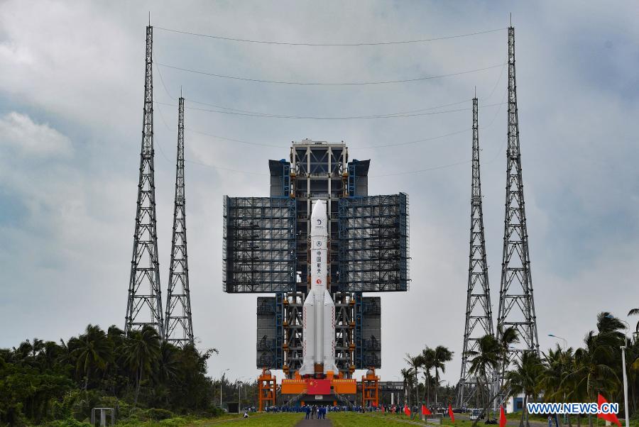 WENCHANG, Hainan, Nov. 17 (Xinhua) -- The fifth Long March-5 rocket, to be used to launch China's Chang'e-5 lunar probe, was vertically transported to the launching area at the Wenchang Spacecraft Launch Site in south China's Hainan Province on Tuesday.