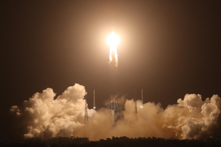 A Long March-5 rocket, carrying the Chang'e-5 spacecraft, blasted off from the Wenchang Spacecraft Launch Site on the coast of southern island province of Hainan at 4:30 a.m. (Beijing Time).