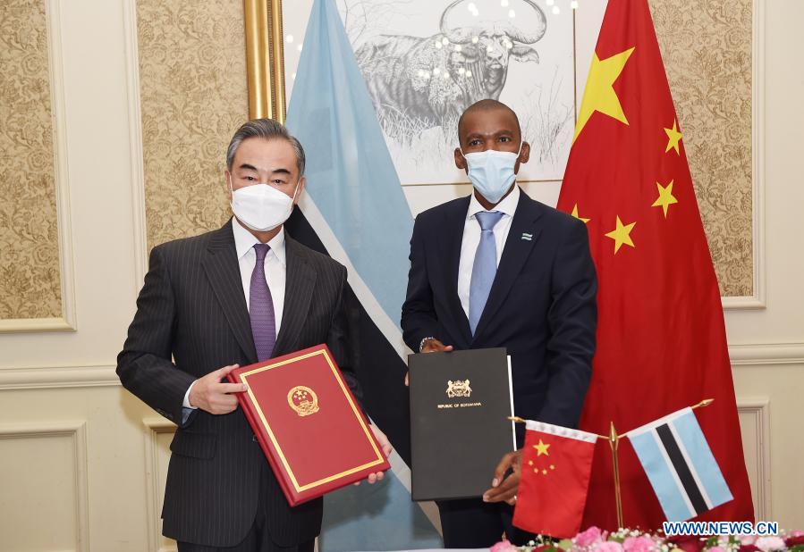 Visiting Chinese State Councilor and Foreign Minister Wang Yi and his Botswana counterpart Lemogang Kwape signed the MoU between the two governments after their talks in Gaborone.