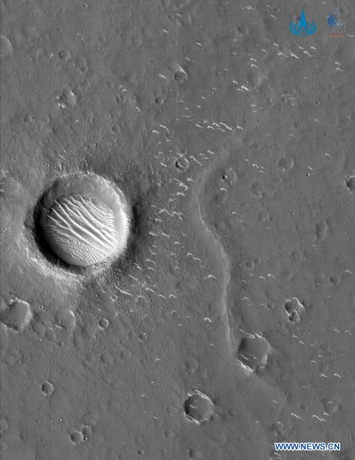 Photo released on March 4, 2021 by the China National Space Administration (CNSA) shows a high-resolution image of Mars captured by the country's Tianwen-1 probe. The China National Space Administration (CNSA) on Thursday published high-resolution images of Mars captured by the country's Tianwen-1 probe. These images include two panchromatic images and one color image, said the CNSA. (CNSA/Handout via Xinhua)