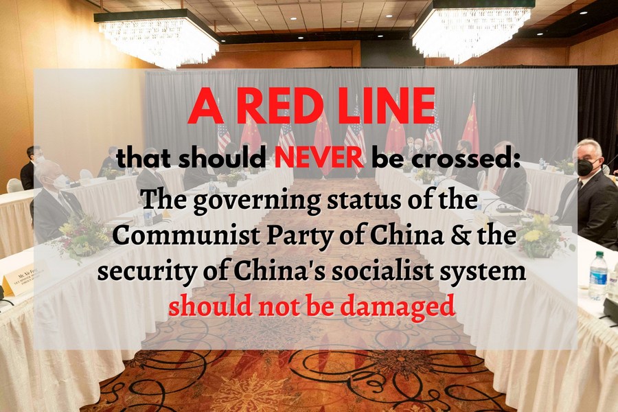 The governing status of the CPC and the security of China's socialist system should not be damaged, and that is a red line that should never be crossed, stressed the Chinese delegation.