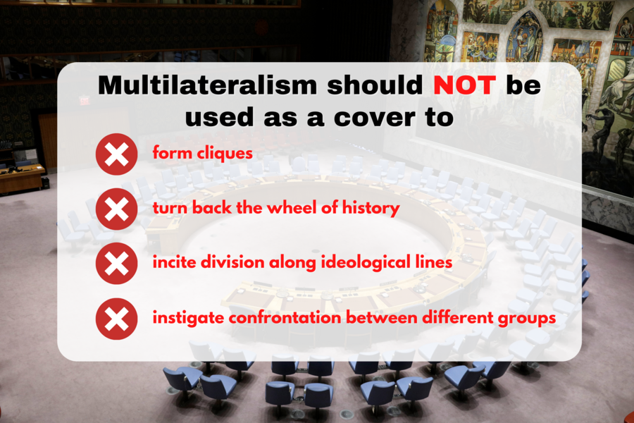 It should not be used as a cover to form cliques, turn back the wheel of history, incite division along ideological lines, or instigate confrontation between different groups, added the delegation.