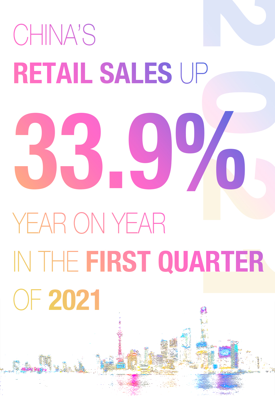 In Q1, retail sales went up 33.9 percent year on year to 10.5 trillion yuan (about 1.6 trillion U.S. dollars), reversing from declines in Q1 2020, the National Bureau of Statistics (NBS) said Friday.
