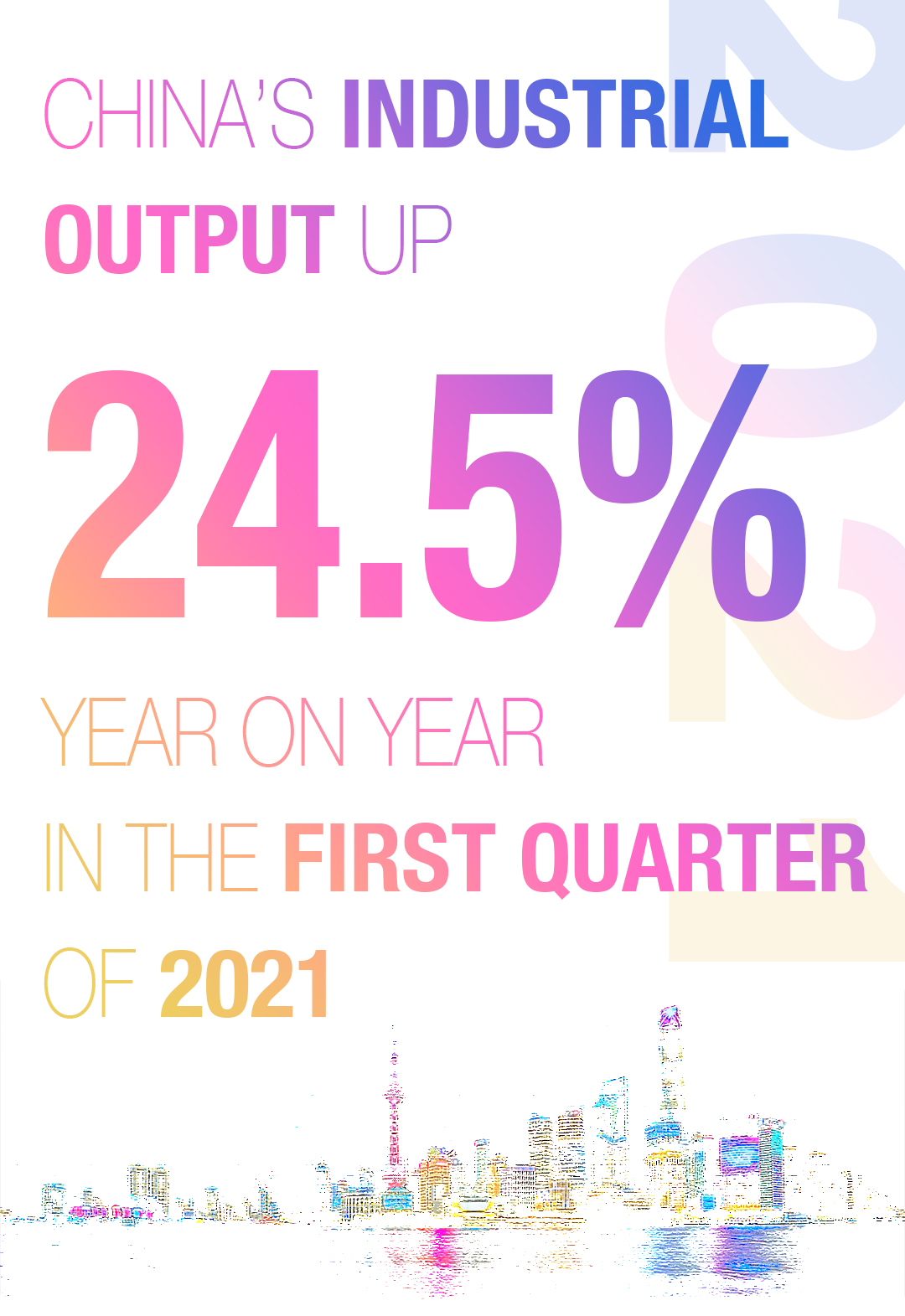 BEIJING, April 16 (Xinhua) -- China's economy grew 18.3 percent year on year in the first quarter of 2021, as strong domestic and foreign demands power recovery from a low base in early 2020 when COVID-19 stalled the world's second largest economy.
