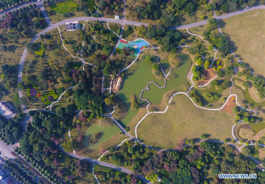 Aerial photo taken on Nov. 28, 2018 shows the Bandao park in Baise of south China's Guangxi Zhuang Autonomous Region. Covering an area of around 36,300 square kilometers and holding a population of more than 4.1 million, Baise is a major base for fruits and vegetables, also one of China's most important producers of aluminum.(Xinhua/Zhang Shanchen)
