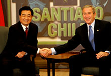 Hu expounds China's stance on Asia-Pacific regional cooperation, APEC Chinese President Hu Jintao pledged Sunday to support the Asia-Pacific Economic Cooperation (APEC) to strengthen counter-terrorism cooperation and create peaceful and stable regional environment. Hu made the pledge when speaking at Retreat II of the 12th APEC Economic Leaders' Meeting in the Chilean capital. He expounded China's stance on Asia-Pacific regional cooperation and APEC's future development in his speech.