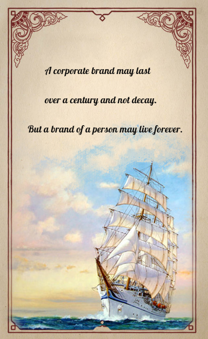 1. A corporate brand may last over a century and not decay. But a brand of a person may live forever.