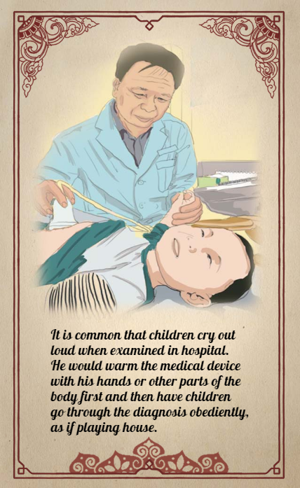 2. It is common that children cry out loud when examined in hospital. He would warm the medical device with his hands or other parts of the body first and then have children go through the diagnosis obediently, as if playing house.