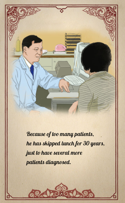 3. Because of too many patients, he has skipped lunch for 30 years, just to have several more patients diagnosed.