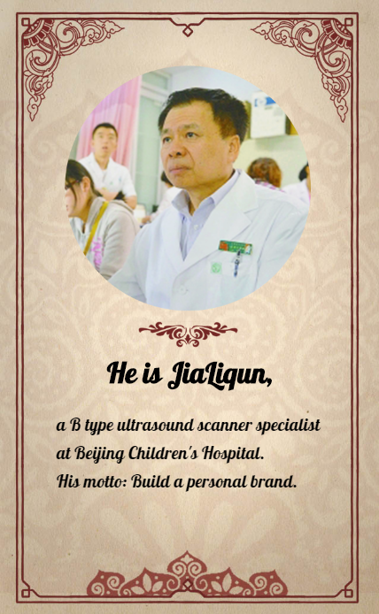 7. He is Jia Liqun, a B-type ultrasound scanner specialist at Beijing Children's Hospital. His motto: Build a personal brand.