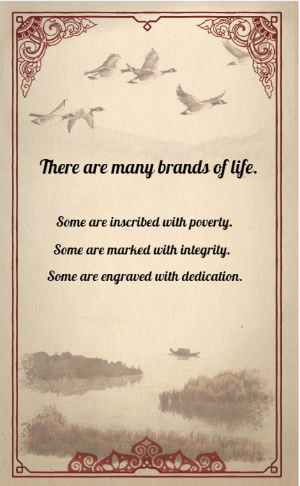9. There are many brands of life. Some are inscribed with poverty. Some are marked with integrity. Some are engraved with dedication.