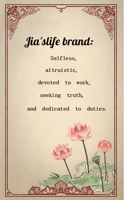 10. Jia's life brand: Selfless, altruistic, devoted to work, seeking truth, and dedicated to duties.
