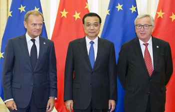Premier Li, Tusk and Juncker attend press conference in Brussels