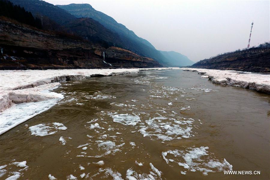 5 Ocak 2017'de çekilen fotoğraf, Kuzey Çin'in Shanxi Eyaletindeki Sarı Nehir'in Jixian bölümünde yüzen buz gösterir. (Xinhua / Zhan Yan)