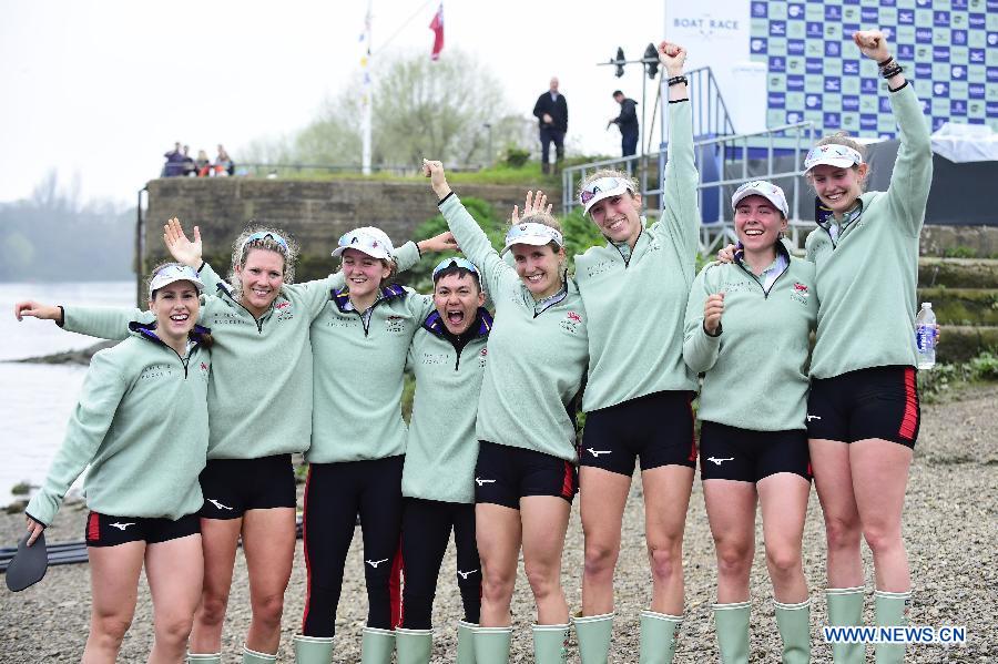 LONDON, April 7 (Xinhua) -- Cambridge on Sunday beat Oxford in both the men's and women's Boat Races in west London. With double Olympic champion James Cracknell in the men's crew, Cambridge registered a double victory for the second successive year to win the competition.