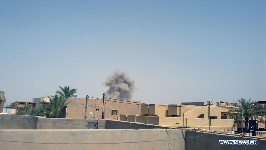 FALLUJAH, June 4, 2016 (Xinhua) -- Smoke rises after the U.S.-led coalition warplanes struck Islamic State (IS) militants in Fallujah city, some 50 kilometers west of Baghdad, Iraq, on June 4, 2016. At least three people were killed and eight others wounded during the bombing. (Xinhua/Sami Jawad)