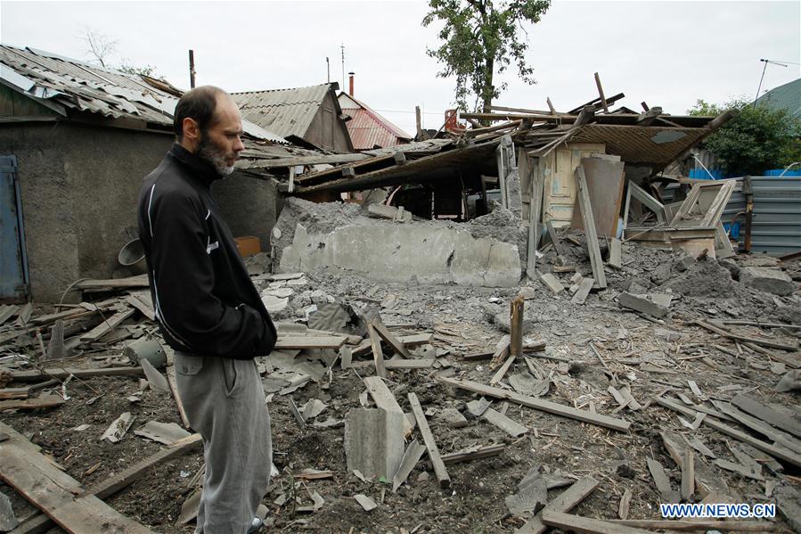 DONETSK, June 9, 2016 (Xinhua) -- A man stands in the ruins of his destroyed house in Donetsk, eastern Ukraine, June 9, 2016. At least two people were killed and 13 others wounded in the confrontation between government troops and independence-seeking insurgents in eastern Ukraine in the past day, officials from the conflicting parties said Tuesday. (Xinhua/Alexander Ermochenko)