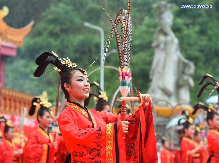 GUTIAN, June 13, 2016 (Xinhua) -- A sacrificial ceremony for Chen Jinggu, or Lady Linshui, known as the patron of women and children in Fujian's folk story, is held in Gutian County, southeast China's Fujian Province, June 13, 2016. (Xinhua/Song Weiwei)