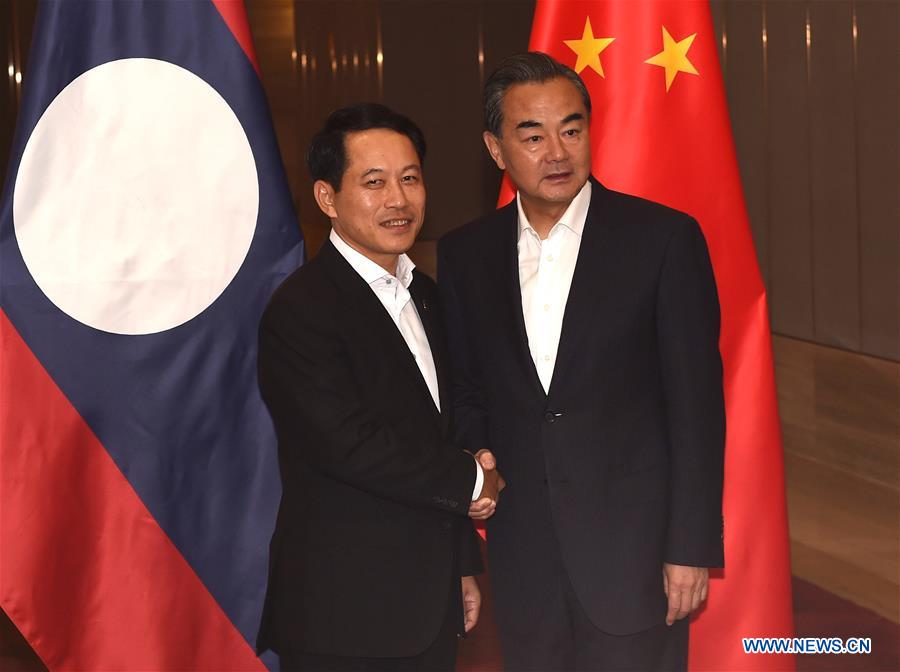 YUXI, June 14, 2016 (Xinhua) -- Chinese Foreign Minister Wang Yi (R) meets with his Lao counterpart Saleumxay Kommasith, who is here to attend a special China-ASEAN foreign ministers' meeting, in Yuxi, southwest China's Yunnan Province, June 13, 2016. (Xinhua/Lin Yiguang)