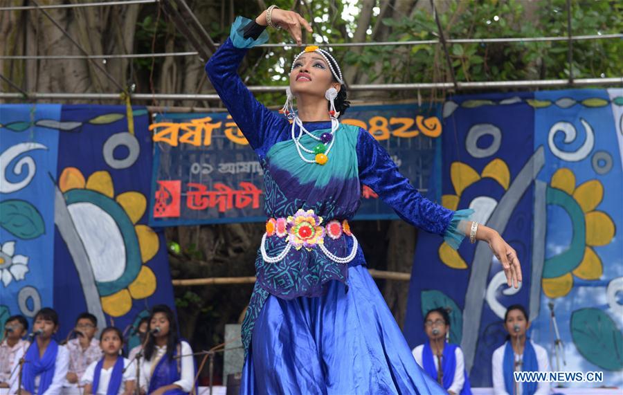 DHAKA, June 15, 2016 (Xinhua) -- A Bangladeshi artist dances during an event marking Pahela Ashar, the first day of the rainy season, in Dhaka, Bangladesh, June 15, 2016. (Xinhua/Shariful Islam)
