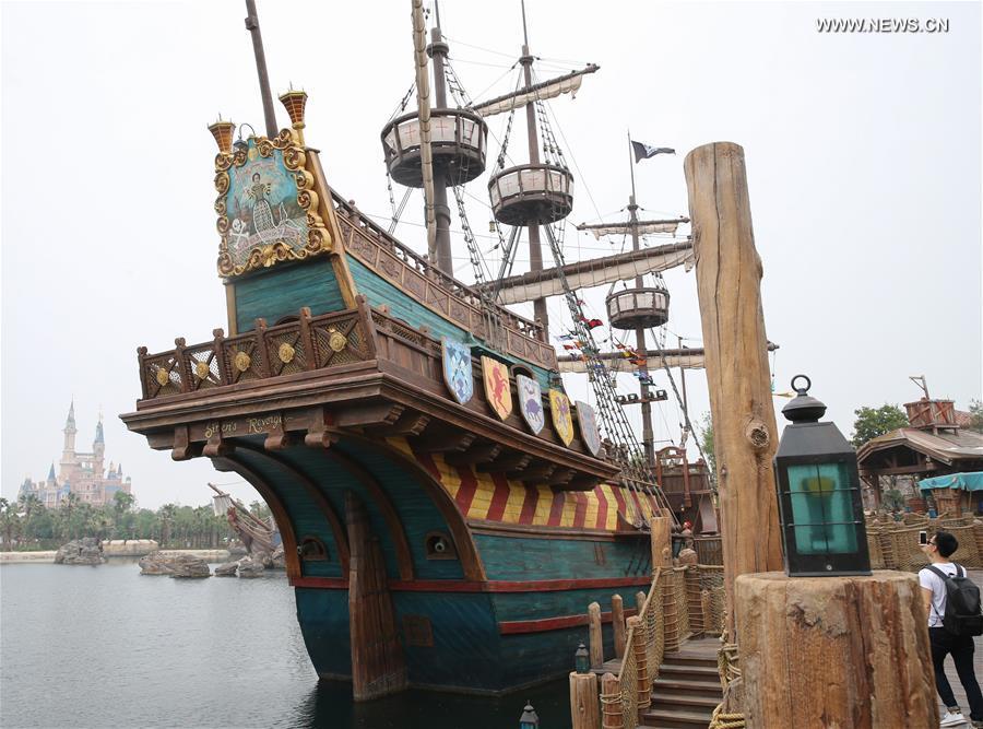 SHANGHAI, June 15, 2016 (Xinhua) -- A tourists who is invited to attend the opening ceremony experiences "Treasure Cove" at Shanghai Disneyland in Shanghai, east China, June 15, 2016. The Shanghai Disney Resort is to open on June 16. (Xinhua/Pei Xin)