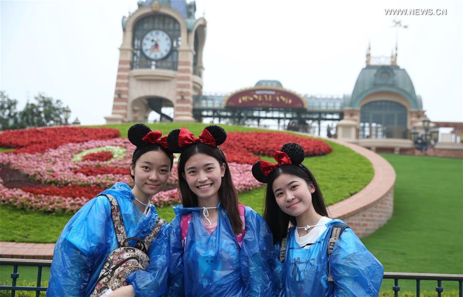 SHANGHAI, June 16, 2016 (Xinhua) -- Tourists pose for a photo in newly-opened Shanghai Disney Resort in Shanghai, east China, June 16, 2016. The Shanghai Disney Resort, with a unique blend of Disney magic and Chinese culture, officially opened Thursday. It's the first Disney resort destination on the Chinese mainland and the sixth around the world. (Xinhua/Ren Long)
