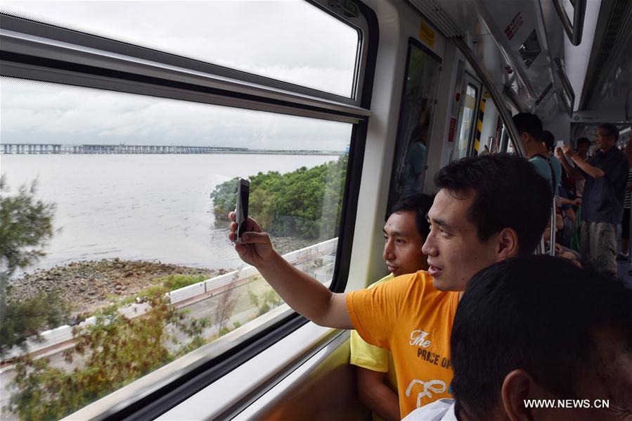 SHENZHEN, June 28, 2016 (Xinhua) -- Passengers take photos of outside views on the newly-opened subway line 11 which directly links Shenzhen Airport with Futian station on Guangzhou-Shenzhen-Hong Kong Express Rail Link, in Shenzhen, south China's Guangdong Province, June 28, 2016. (Xinhua/Mao Siqian)