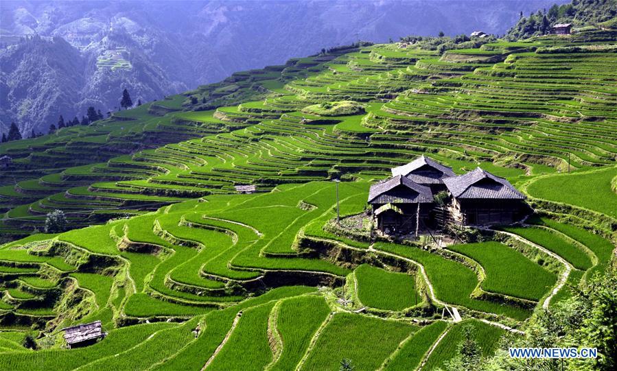 CONGJIANG, June 30, 2016 (Xinhua) -- Photo taken on June 29, 2016 shows terraced fields in Congjiang County, southwest China's Guizhou Province. (Xinhua/Liu Chaofu)