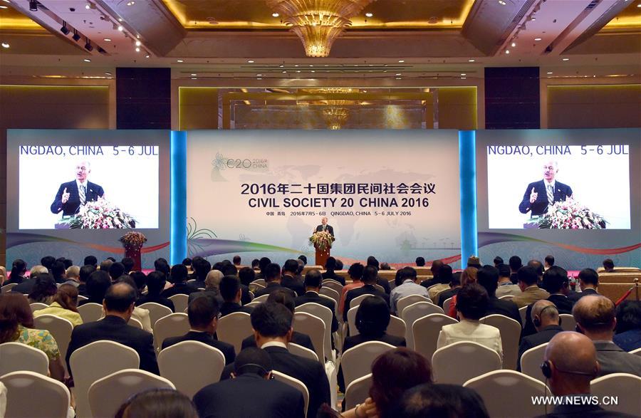 QINGDAO, July 5, 2016 (Xinhua) -- The opening ceremony of the Civil Society 20 China 2016 is held in Qingdao, east China's Shandong Province, July 5, 2016. (Xinhua/Xu Suhui)