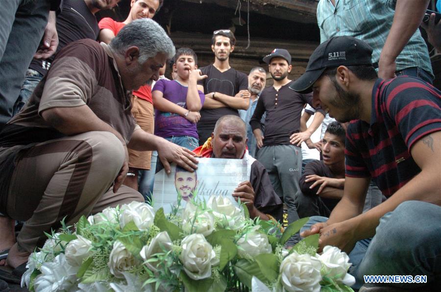 BAGHDAD, July 5, 2016 (Xinhua) -- A man cries over his son killed in Sunday's car bombing attacks in Karrada-Dakhil district in southern Baghdad, Iraq, on July 5, 2016. Iraq began on Monday a three-day national mourning for victims of Sunday's car bombing attacks in the capital city of Baghdad, as the death toll rose to 166. (Xinhua/Khalid Davood)