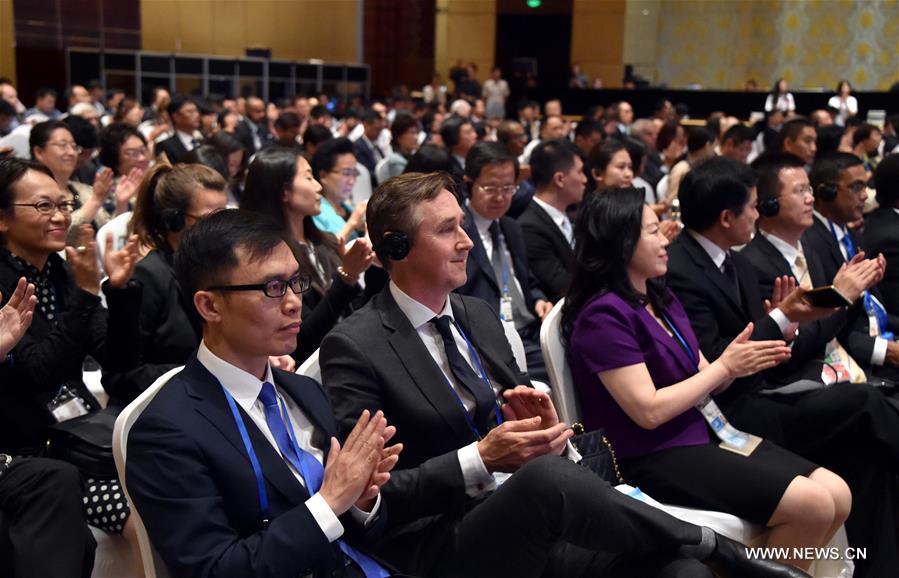 QINGDAO, July 6, 2016 (Xinhua) -- Representatives from home and abroad attend the closing ceremony of the Civil Society 20 China 2016 held in Qingdao, east China's Shandong Province, July 6, 2016. (Xinhua/Xu Suhui)