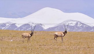 YUEYANG, July 8, 2016 (Xinhua) -- Photo taken on July 8, 2016 shows a warning sign along Dongting Lake, water level of which passes warning level, in Yueyang City, central China's Hunan Province. Influenced by recent heavy rains, the water level in Chenglingji of Dongting Lake reached 34.44 meters Friday morning, 1.94 meters higher than the warning line. (Xinhua/Long Hongtao)