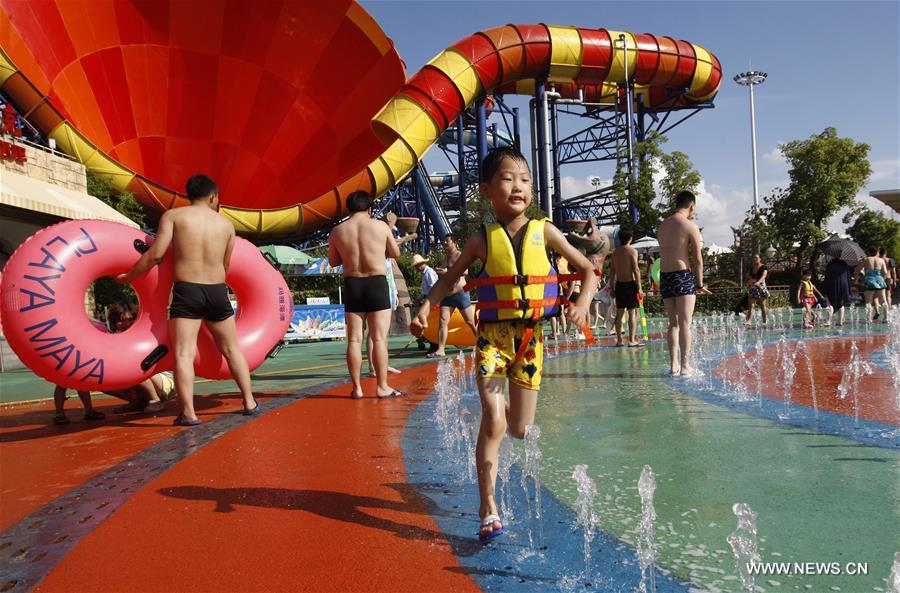 SHANGHAI, July 9, 2016 (Xinhua) -- Children enjoy themselves at Maya Water Park in Shanghai, east China, July 8, 2016. Many residents chose to spend a cool summer here. (Xinhua/Fang Zhe)
