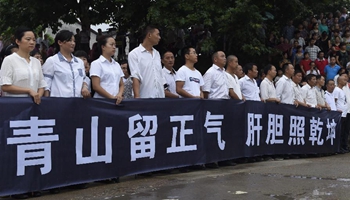 CLEVELAND, July 22, 2016 (Xinhua) -- Donald Trump speaks on the last day of the Republican National Convention in Cleveland, Ohio, the United States, July 21, 2016. New York billionaire Donald Trump officially accepted the presidential nomination of the U.S. Republican Party Thursday night on the final day of the Republican National Convention. (Xinhua/Yin Bogu)