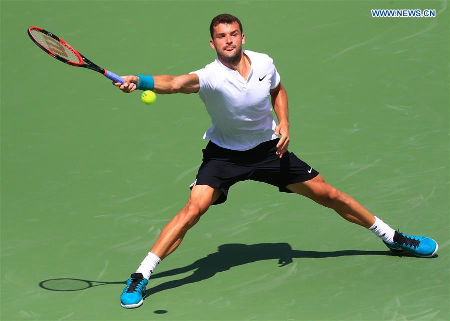 TORONTO, July 26, 2016 (Xinhua) -- Grigor Dimitrov of Bulgaria returns the ball against Yuichi Sugita of Japan during their first round of men's singles match at the 2016 Rogers Cup in Toronto, Canada, July 25, 2016. Grigor Dimitrov won 2-1. (Xinhua/Zou Zheng)