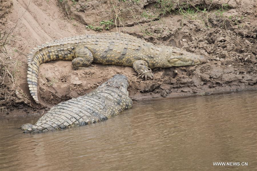 NAIROBI, July 26, 2016 (Xinhua) -- Crocodiles are seen on the bank of Mara River at the Maasai Mara National Reserve, Kenya, July 14, 2016. The Maasai Mara National Reserve, popularly known as Africa's Greatest Wildlife Reserve, is a great tourist attraction center as it offers visitors an opportunity to observe the Africa's "big five": lion, cheetah, elephant, buffalo and rhino. (Xinhua/Meng Tao)