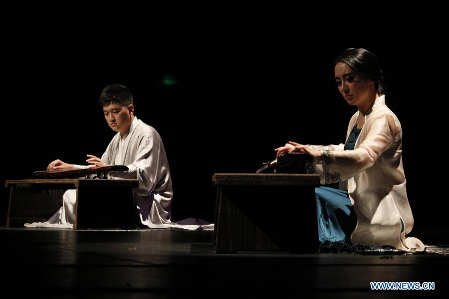 Musicians perform during the gala titled "High Mountain and Fluid Water" at Lima University in Lima, Peru, on the occasion of the 45th anniversary of the bilateral relations between China and Peru, Aug. 9, 2016. (Xinhua/Luis Camacho)