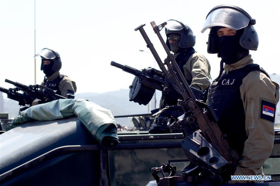 Special police units stand guards during a joint anti-terrorist exercise of Serbia and BiH's Republika Srpska (entity of Bosnia and Herzegovina) near the city of Loznica, Serbia on Aug. 28, 2016.(Xinhua/Nemanja Cabric)