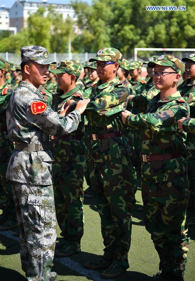 Freshmen take part in military training at the Jilin University in Changchun, capital of northeast China's Jilin Province, Aug. 29, 2016. (Xinhua/Xu Chang)
