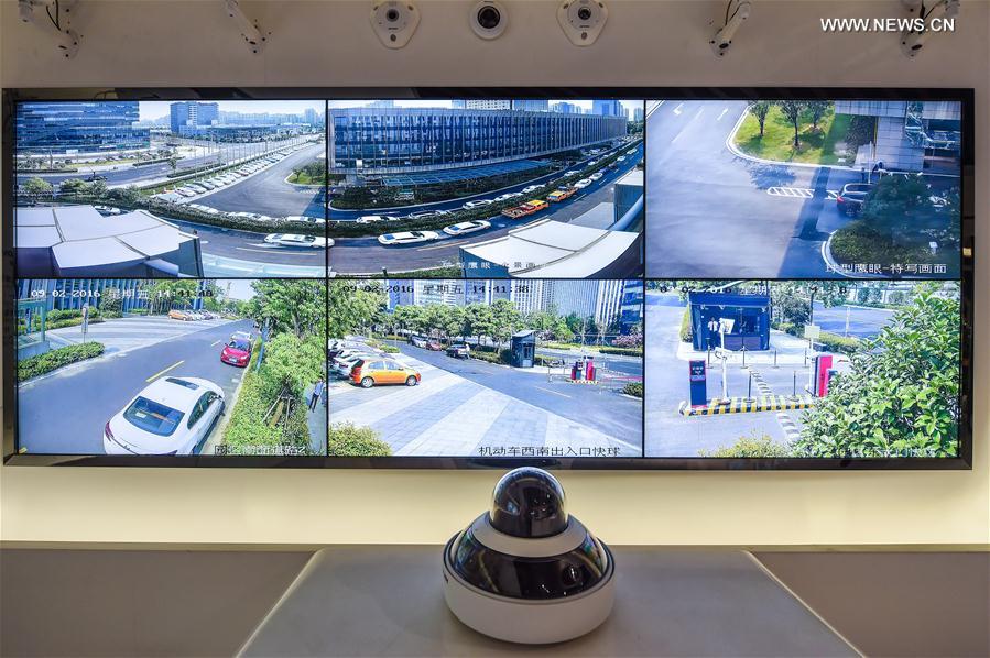 Photo taken on Sept. 2, 2016 shows a panoramic camera system at the Hik Vision company in Hangzhou, capital city of east China's Zhejiang Province. Thousands of smaller online shopping businesses are clustered in Hangzhou, home to e-commerce giant Alibaba. The city, praised by Italian traveler Marco Polo in the 13th century as "the world's most magnificent and noble city," is little-known compared with Beijing and Shanghai, but has much to offer and is a window on new trends in China. (Xinhua/Xu Yu)