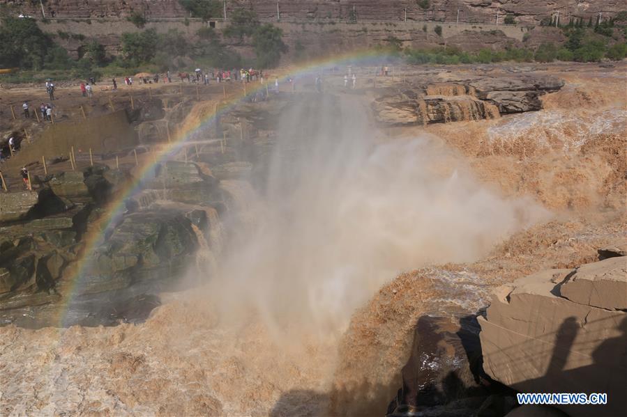 Photo taken on Sept. 4, 2016 shows the Hukou Waterfalls on the Yellow River in Linfen, north China's Shanxi Province. (Xinhua/Wang Huiyao)