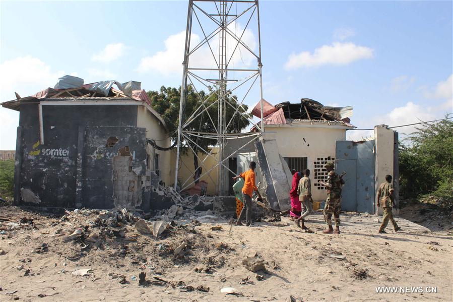 Somali security force members investigate a suicide attack scene in Mogadishu, Somalia, Sept. 18, 2016. A senior Somali military commander and seven of his bodyguards were killed on Sunday in a suicide car bomb attack in the capital Mogadishu, a local government spokesman said. (Xinhua/Faissal Isse)