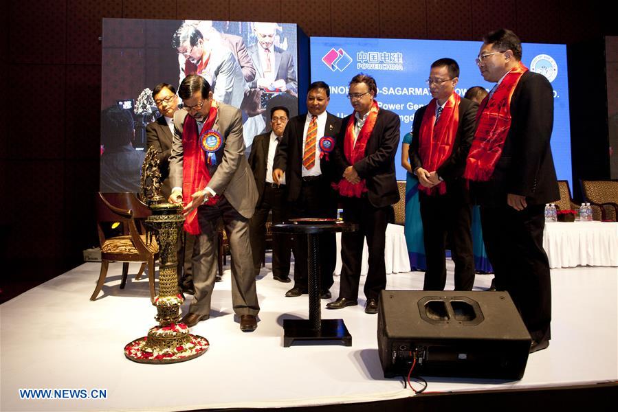 Nepal's Energy Minister Janardan Sharma (2nd L) orders the release of the power during the "Power Generation Ceremony" of Upper Marsyangdi-A Hydroelectric Project in Kathmandu, Nepal, Sept. 26, 2016. Upper Marsyangdi-A Hydroelectric Project, developed by a China-Nepal joint venture company, started generating power from Monday. Nepal's Energy Minister Janardan Sharma ordered the release of the power from the project at a "Power Generation Ceremony" held in Kathmandu and the power was connected with the national grid instantly. (Xinhua/Pratap Thapa)