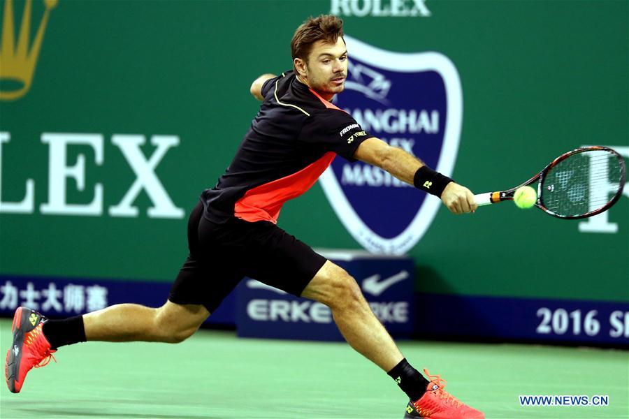 Stan Wawrinka of Switzerland returns the ball during the third round singles match against Gilles Simon of France at the Shanghai Masters tennis tournament in Shanghai, east China, Oct. 13, 2016. Stan Wawrinka lost 0-2. (Xinhua/Fan Jun)