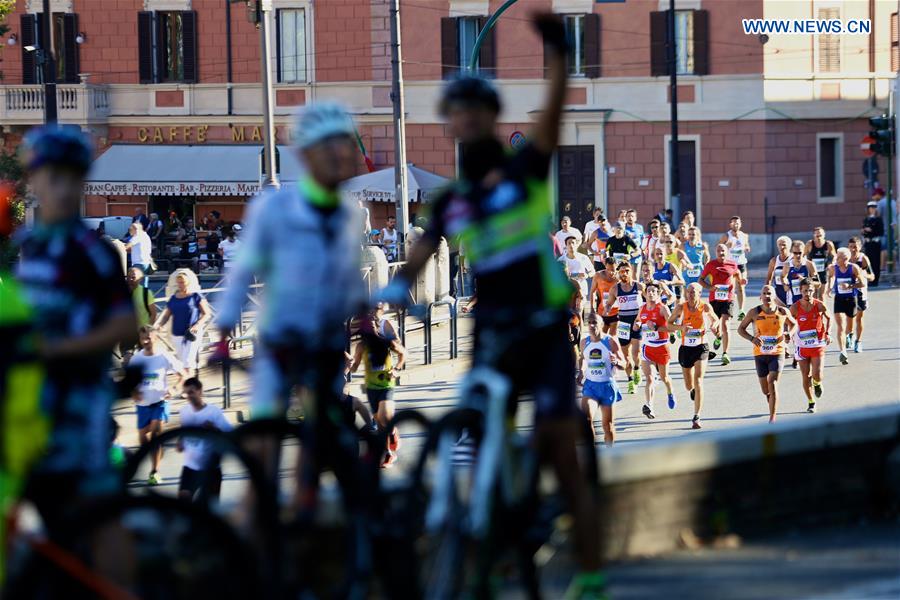 Participants take part in the "Zero Hunger Run" in Rome, capital of Italy, Oct. 16, 2016. "Zero Hunger Run" was held in Rome on Sunday to mark the 36th World Food Day. The event recalls the commitment of 193 nations to the Sustainable Development Goals and their pledge to end hunger by 2030. (Xinhua/Jin Yu)