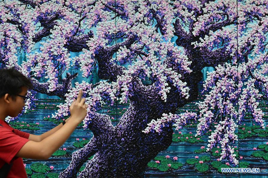 A visitor takes photo of an art piece during the Art Expo Malaysia in Kuala Lumpur, on Oct. 20, 2016. The Art Expo Malaysia (AEM) celebrating its 10th edition in 2016 kicked off here on Thursday. (Xinhua/Chong Voon Chung)